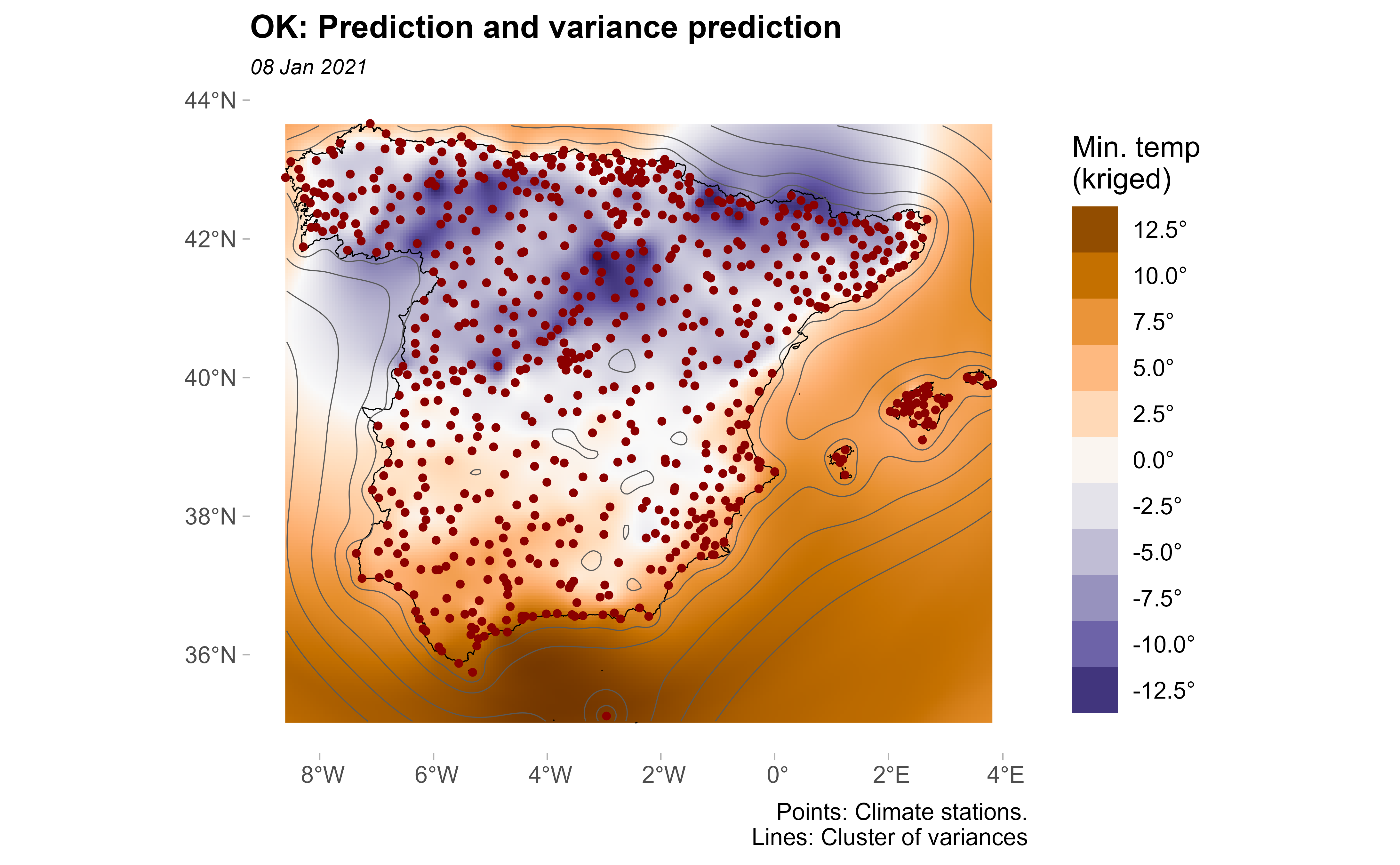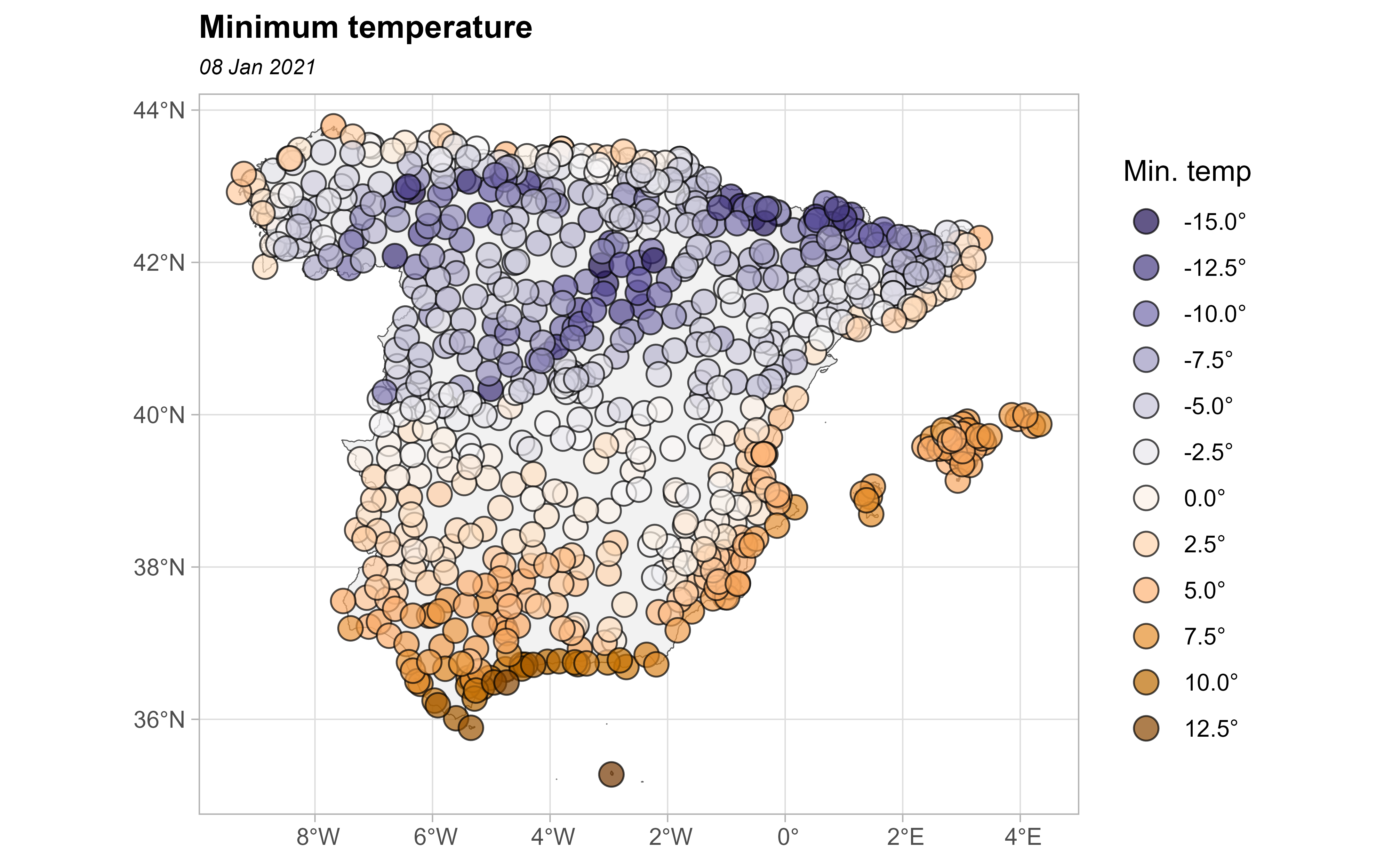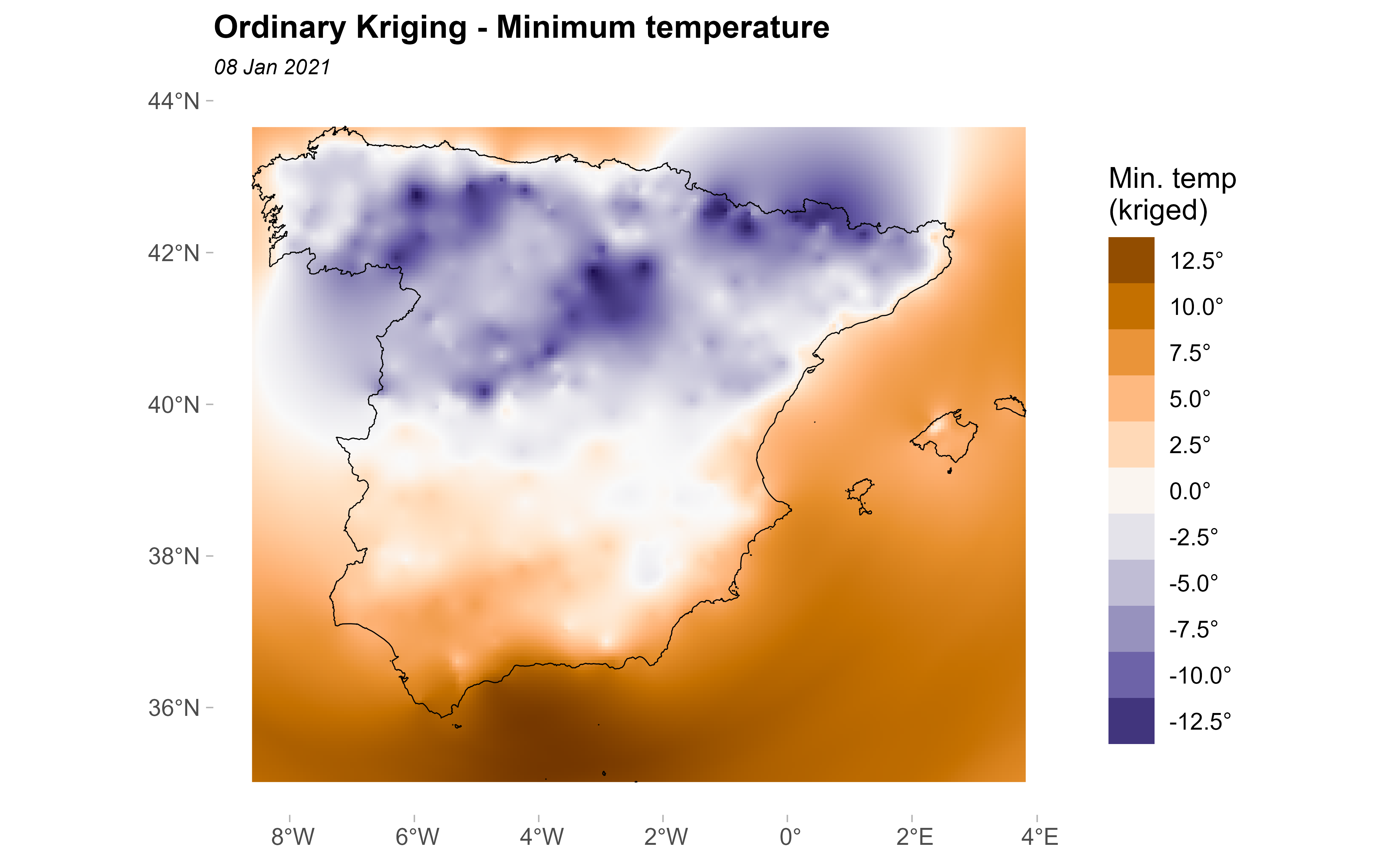 In this paper, we are going to deal with geostatistical data; specifically we are going to model the air temperature in Spain on 8 January 2021.