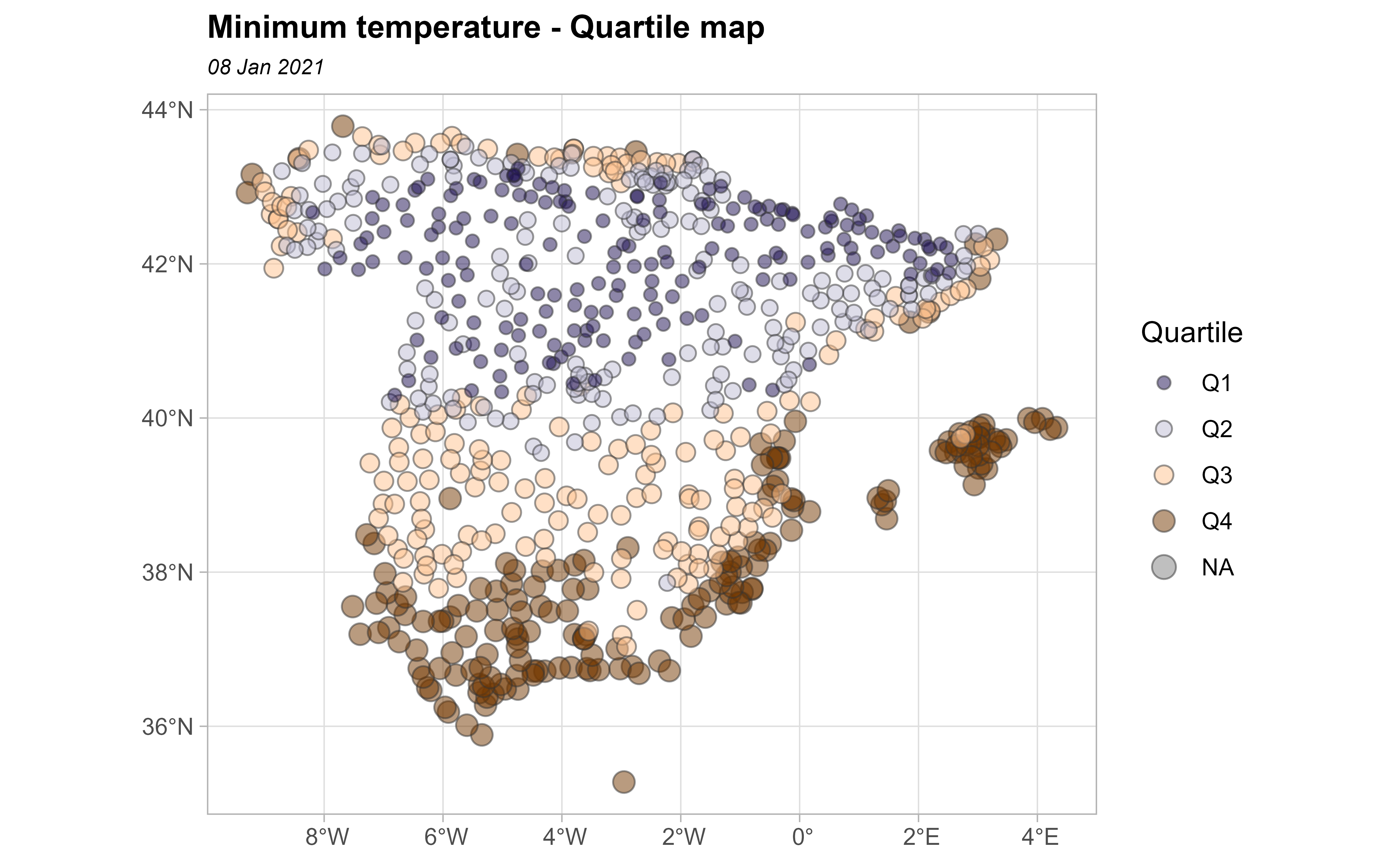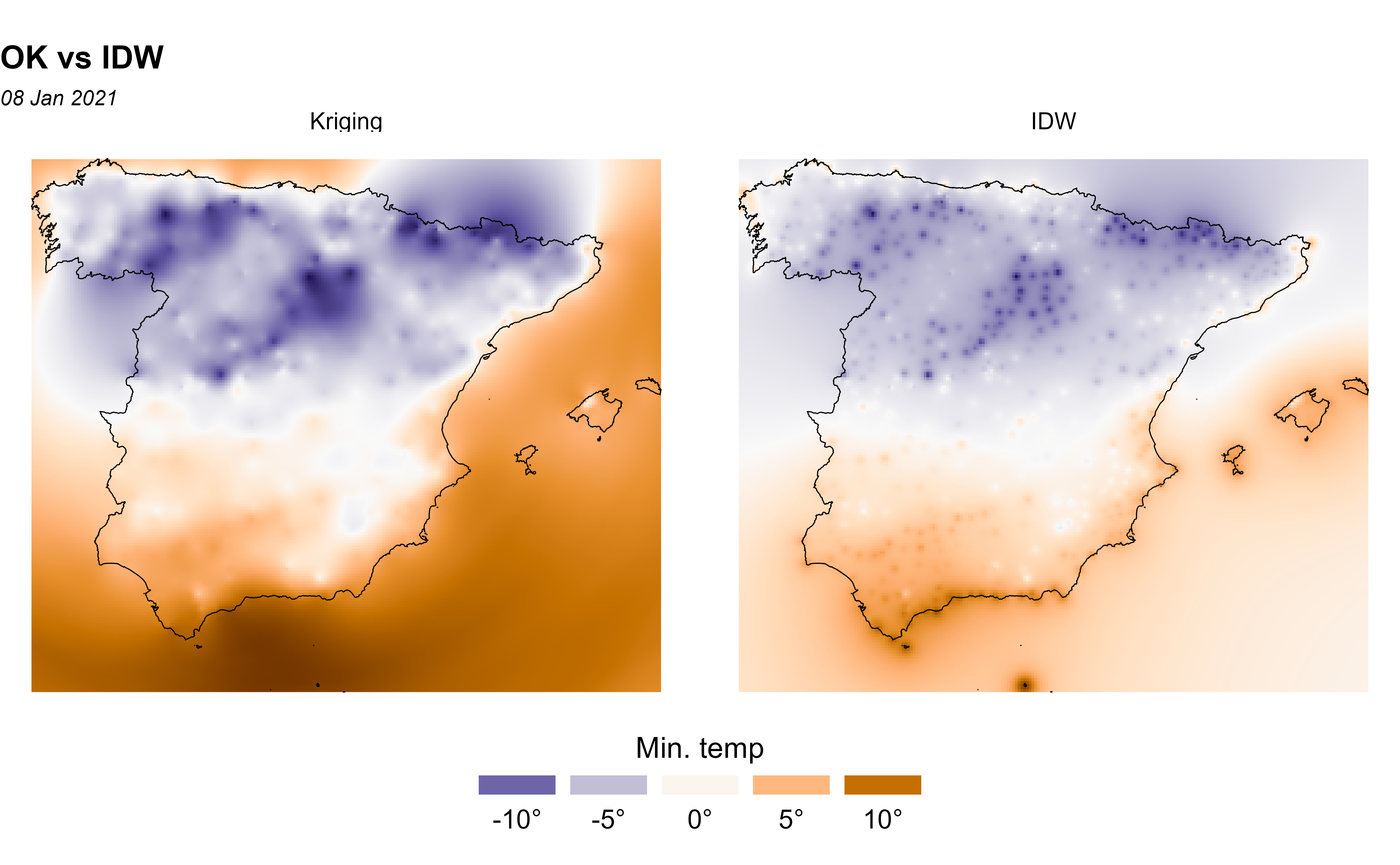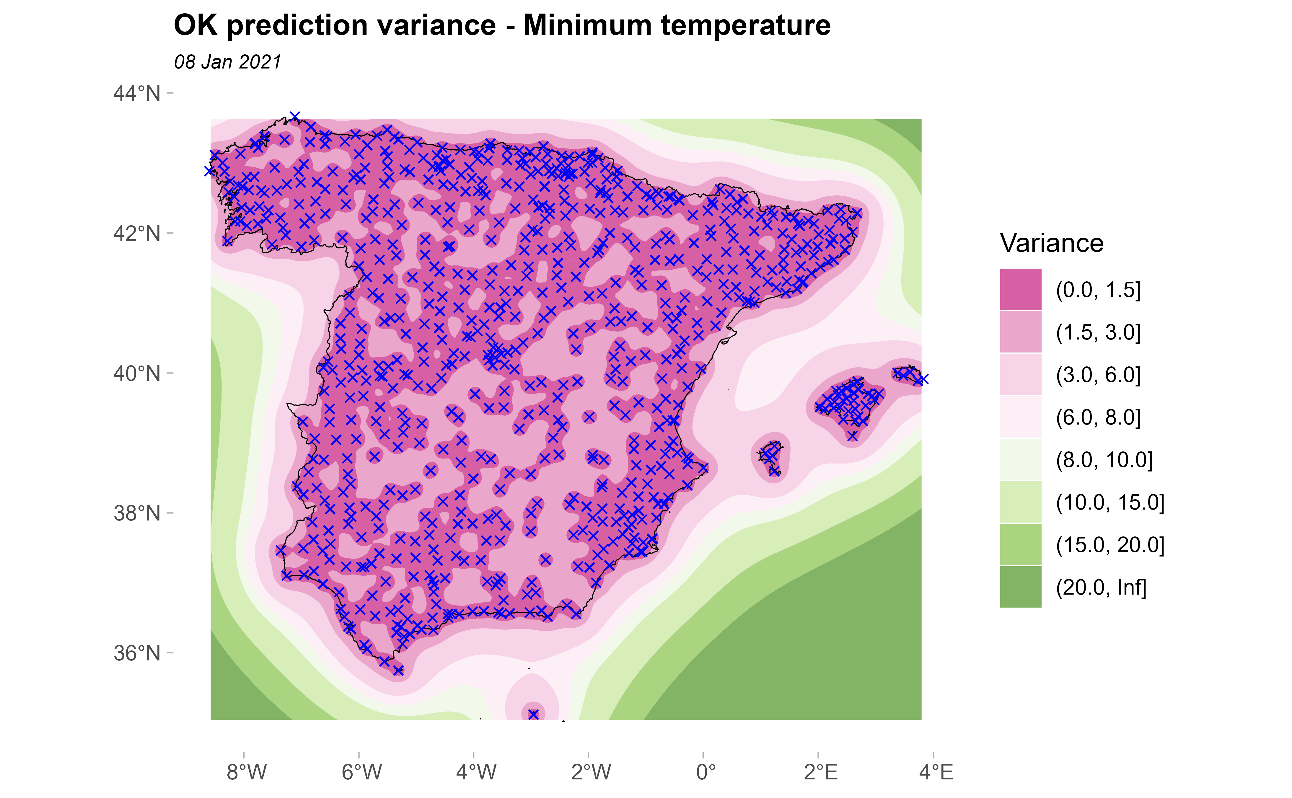 In this paper, we are going to deal with geostatistical data; specifically we are going to model the air temperature in Spain on 8 January 2021.