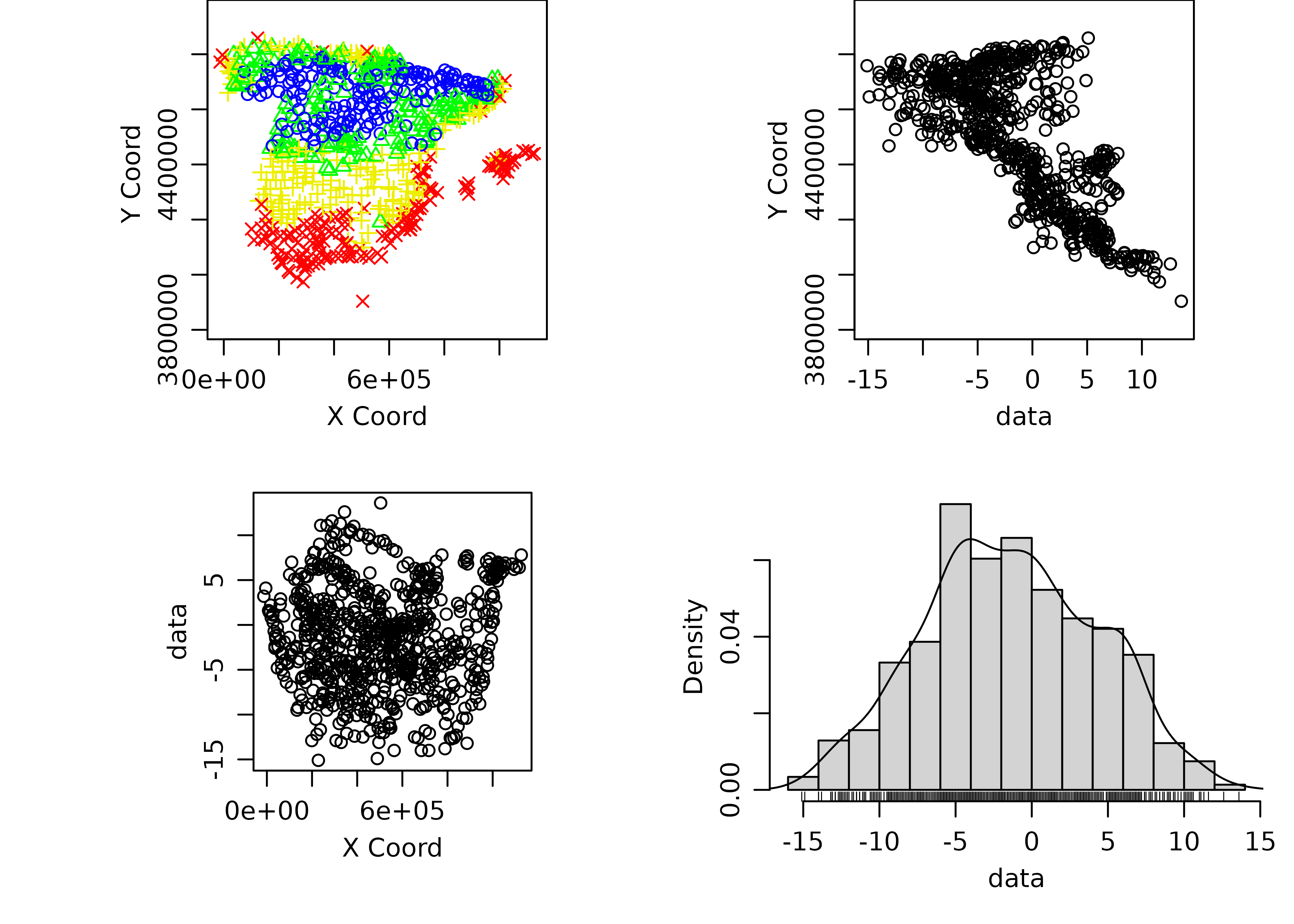 - Geostatistical data. For example, the level of (ln)CO in Madrid: