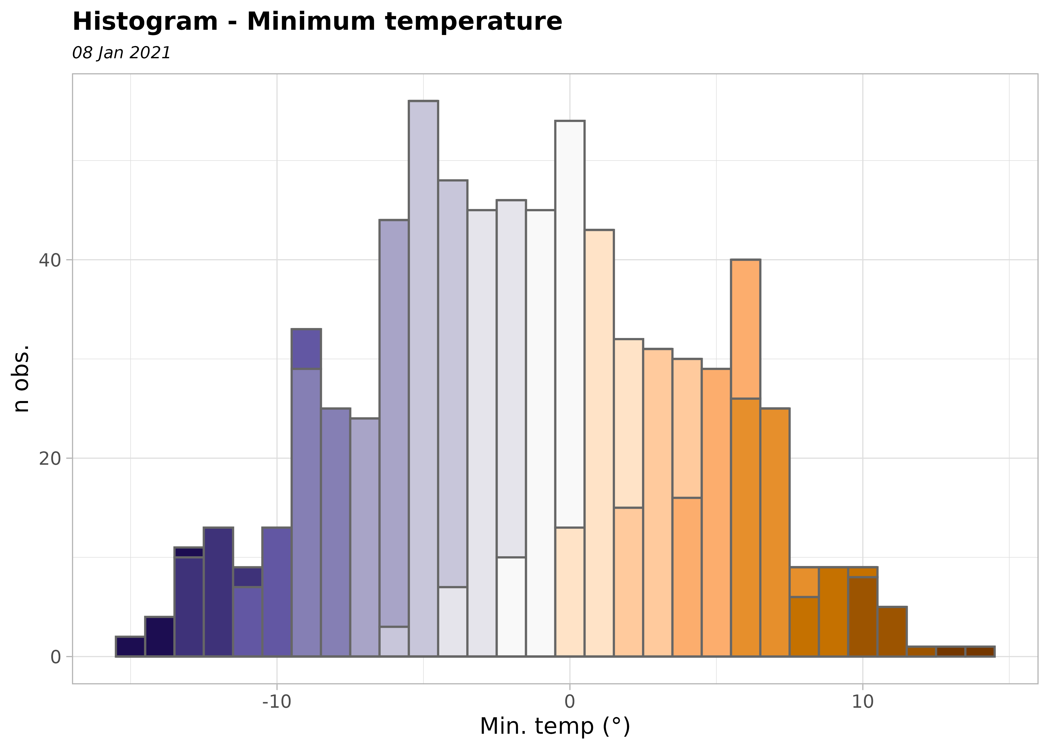 )Now, we examine the possible variables that can be analyzed. We are interested in minimum daily temperature named tmin, although the API also provides other interesting information: