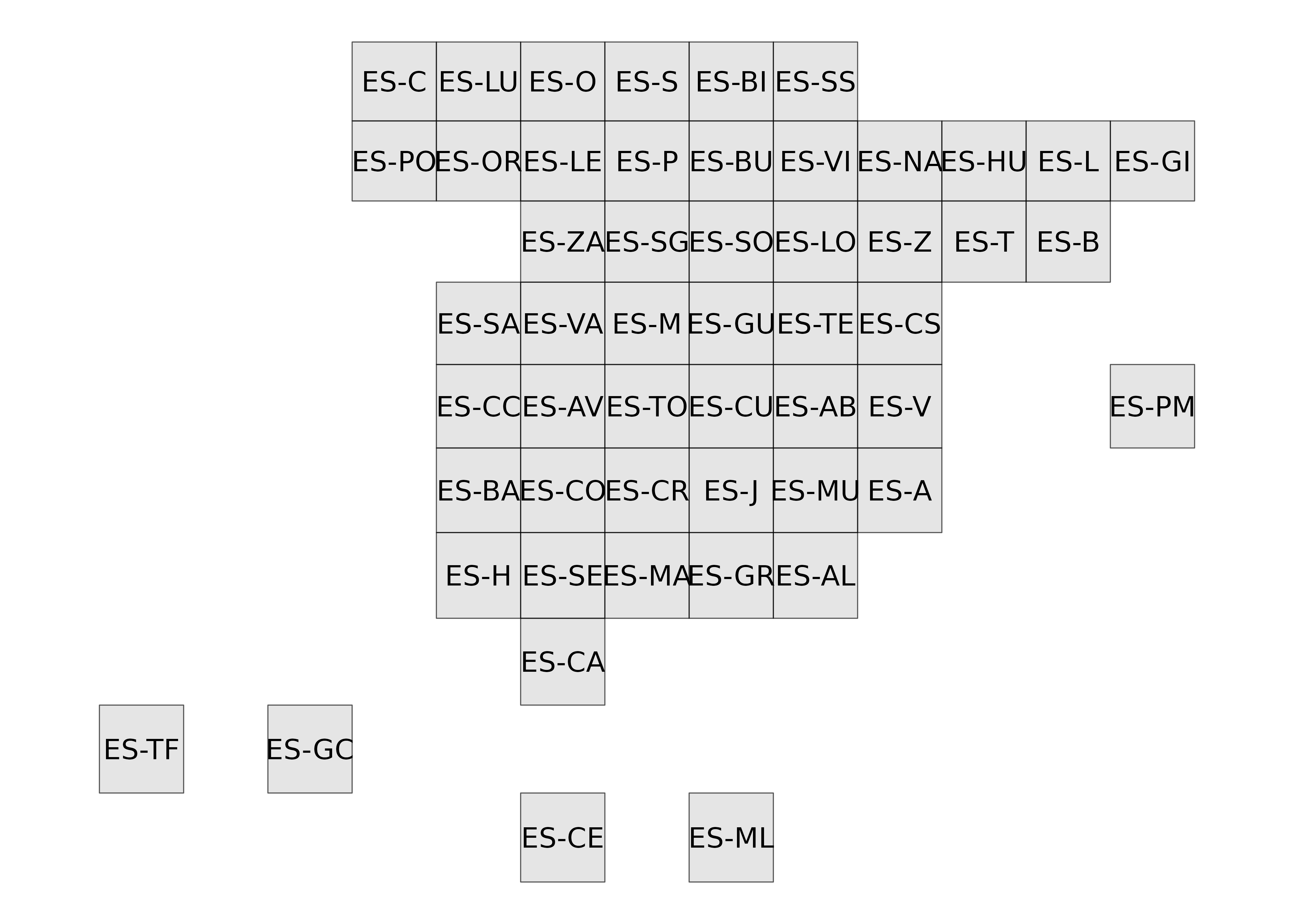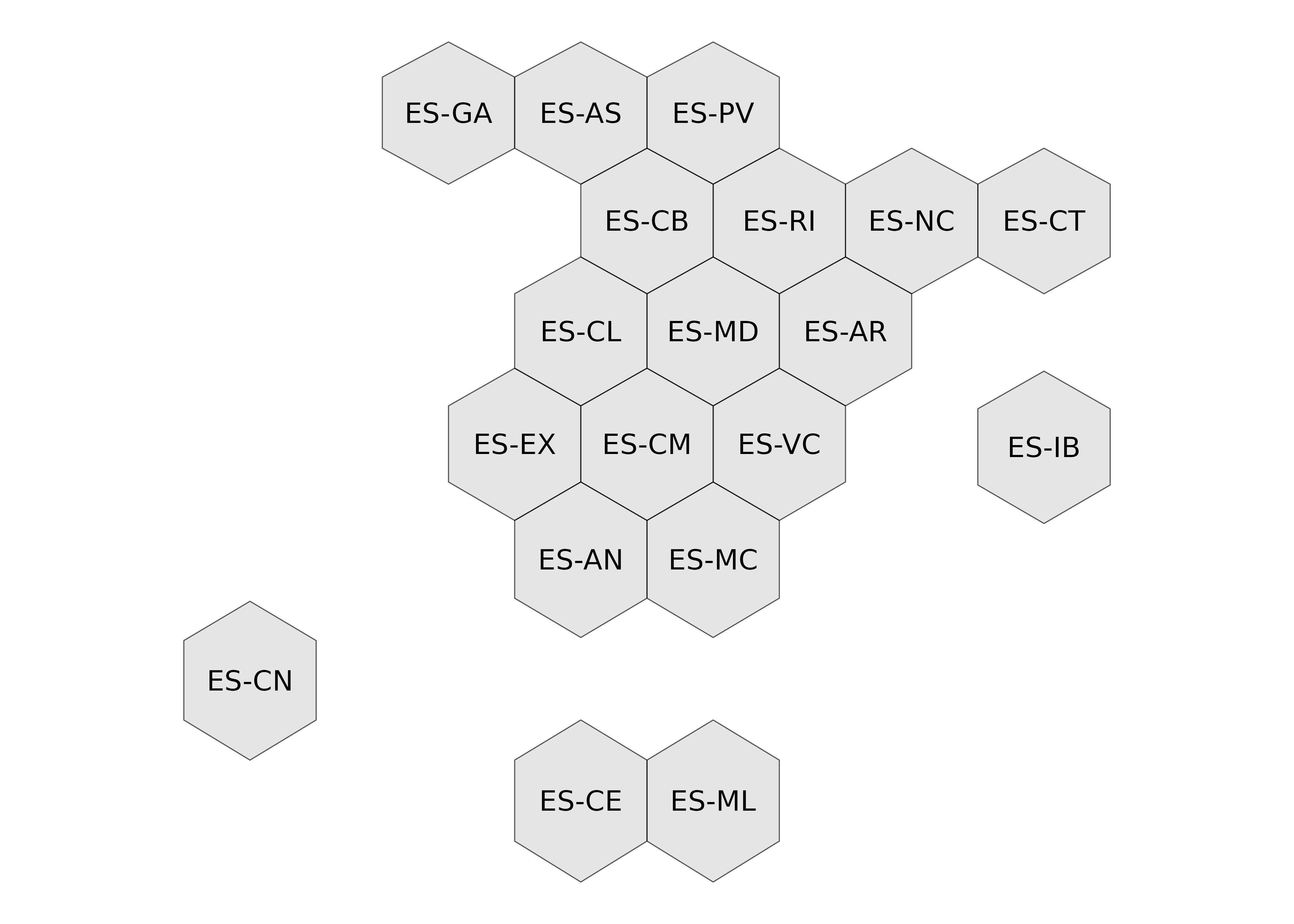 Disponibles como cuadrados y hexágonos, para provincias y CCAA.