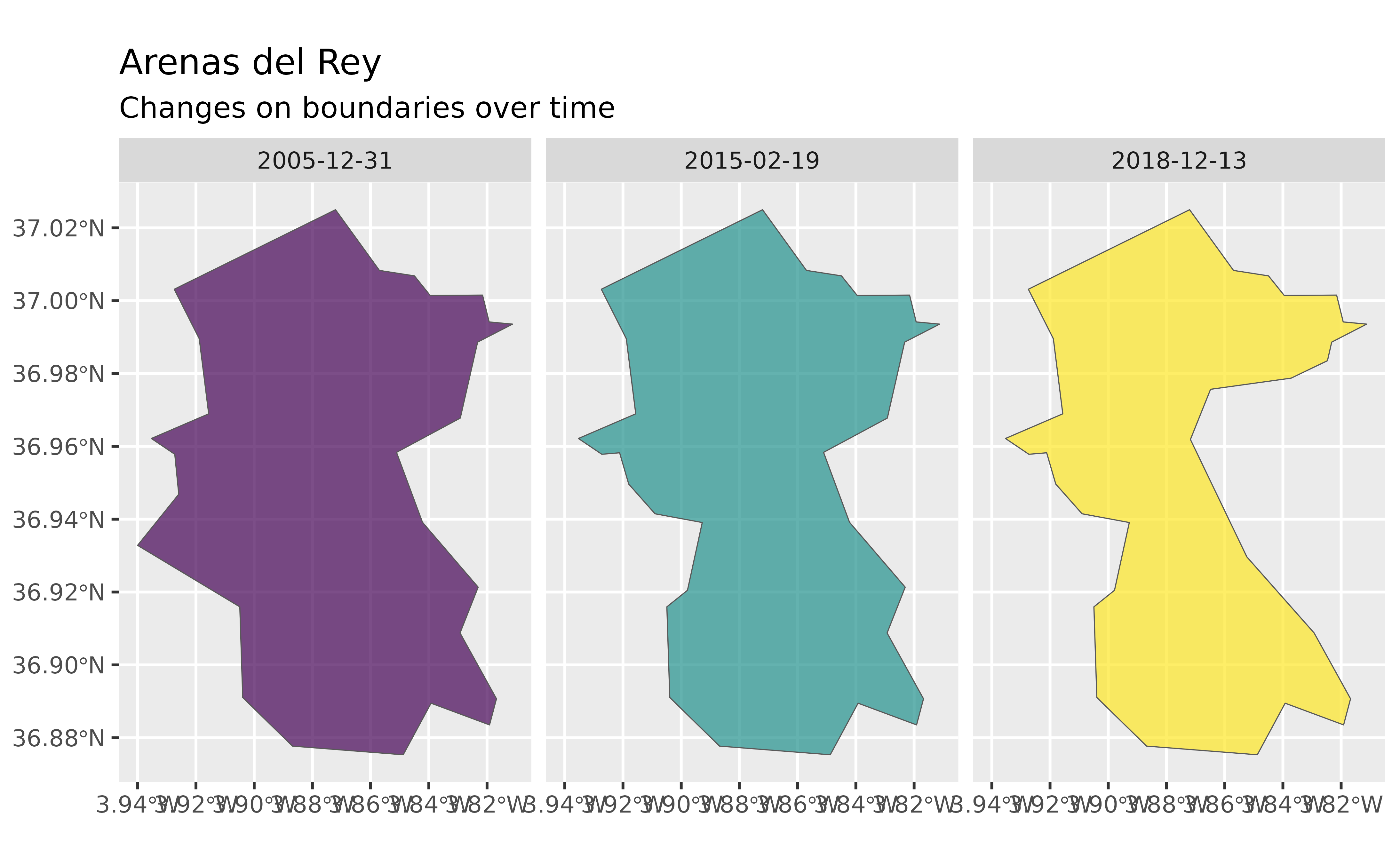 Although mapSpain supplies cartographically suitable datasets, a historical database of Spanish municipal boundaries is also available, offering higher‑resolution geometries that may be more appropriate for GIS‑oriented workflows: